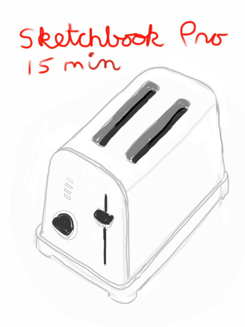 I compared freehand drawing apps by doing a timed 15-minute drawing of a toaster (why not?) with several highly rated apps, enabling me to compare features and results. I used my finger, not a stylus. I had not used any of these apps before this experiment; my learning curve is built into the 15-minute time limit. 3 apps stood out favorably.
